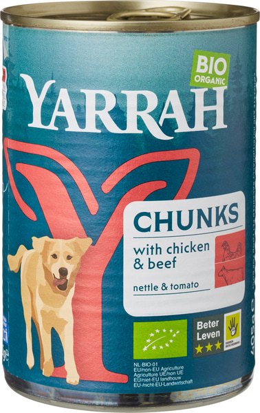 Hond blik brokjes kip in saus doos