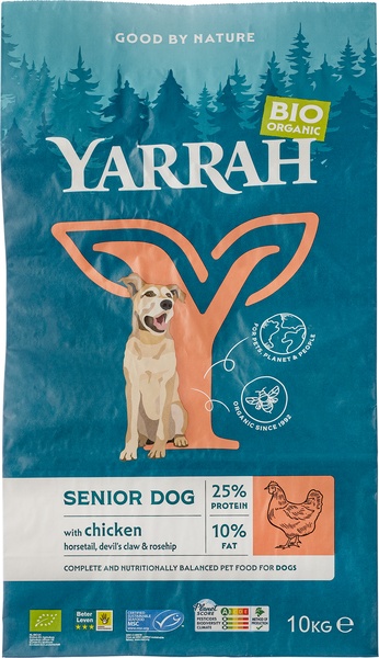 Ingredienten: Gedroogde kip* (17,5%), MAIS*, TARWE*, HAVER*, erwten*, SOJASCHILFERS*, kippenvet*, zonnebloempitschilfers*, rijsteiwit*, GEDROOGDE MSC HARING1, gehydrolyseerde lever*, biergist, mineralen, MSC VISOLIE1, heermoes*, duivelsklauw*, rozenbottel*. * = Biologisch. 1Uit een MSC gecertificeerde duurzame visserij (www.msc.org/nl). 96,9% van de landbouwgrondstoffen is afkomstig uit biologische landbouw."