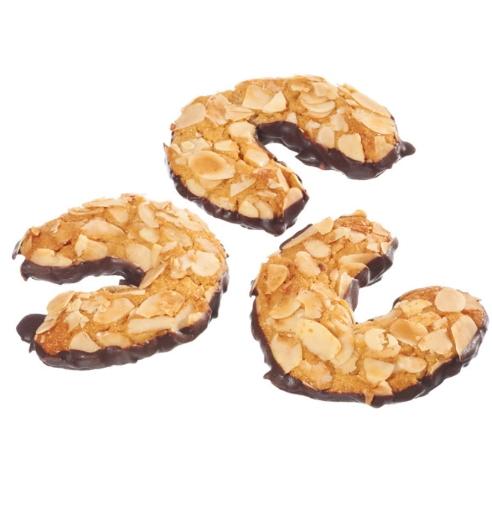 Ingredienten: MARSEPEIN* (AMANDELEN*, ruwe rietsuiker*, glucosestroop*, water), ruwe rietsuiker*, EIEREN*, pure couverture* (cacaomassa*, ruwe rietsuiker*, cacaoboter*), AMANDELschaafsel*