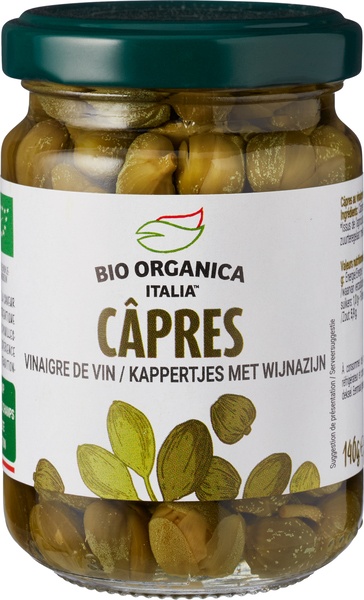 Ingredienten: Kappertjes*, water, wijnazijn*, zout, zuurteregelaar: citroenzuur, * = Biologisch
